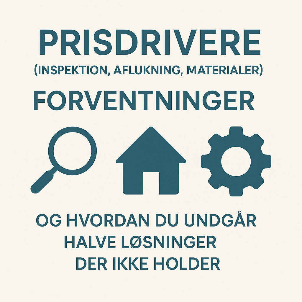 Pointen er enkel: Hvis du forstår prisdriverne, kan du sammenligne tilbud på et oplyst grundlag og undgå “halv løsning”-fælden, hvor du betaler to gange. Mini-konklusion: Jo tidligere du får klarhed over årsag og adgangsveje, desto mindre spild betaler du for senere.